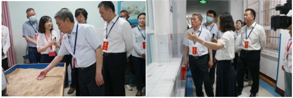 随后,视察组一行深入我院儿童康复病区实地察看了儿童感觉统合训练室、音乐治疗室、沙盘游戏室等儿童诊疗康复区域,详细了解了儿童康复训练和救助情况。